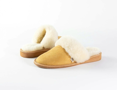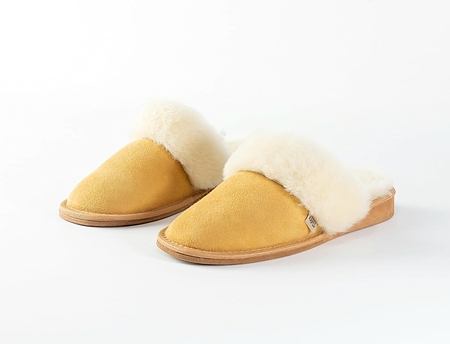 Dejlige skræddersyede lammeskinds dametøfler, med slidstærk EVA gummisål og pelskant af lammeskind