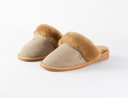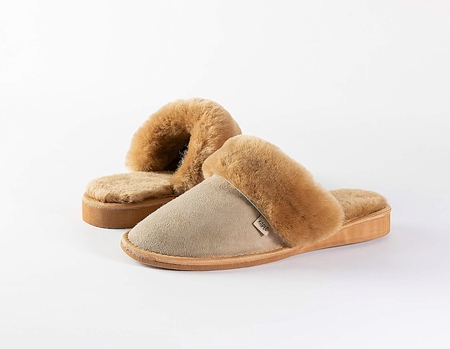 Du får ægte rulams hjemmesko, hvilket vil sige ruskind udvendig og lammepels overalt indvendig.