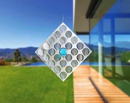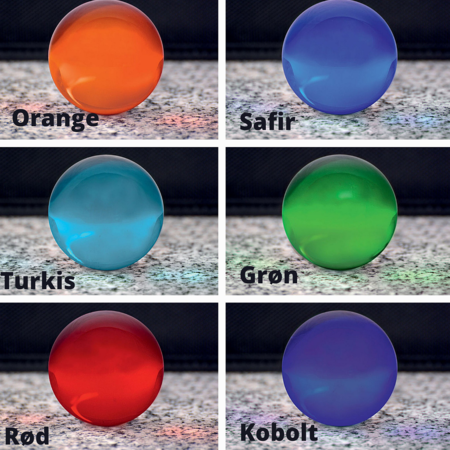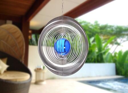 Glas kuglen eller glas krystallen i midten fås i mange valgfrie farver og der kan tilkøbes ekstra for variation af udtrykket på dit vindspil.