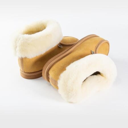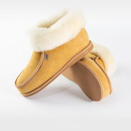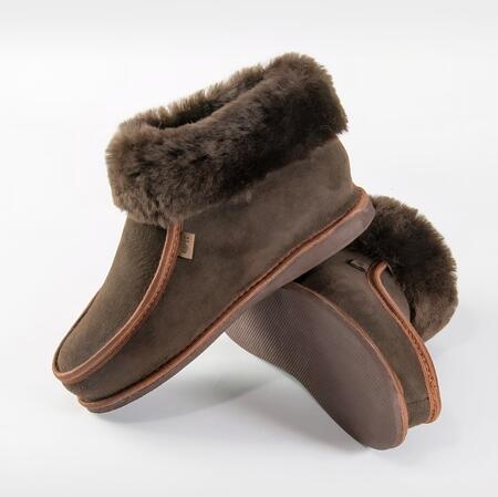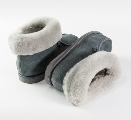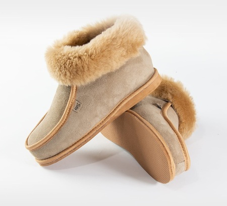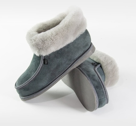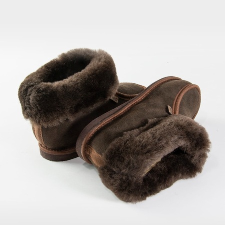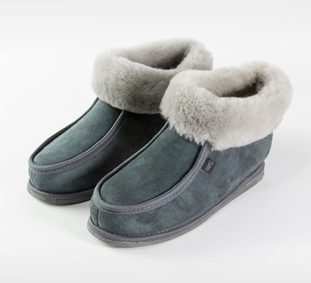 Vores populære model MAMMOTH er en lukket hjemmesko, med ægte ruskind udvendig og ægte lammepels indvendig. For ekstra god komfort har hjemmeskoen en god fast og skridsikker EVA gummisål.