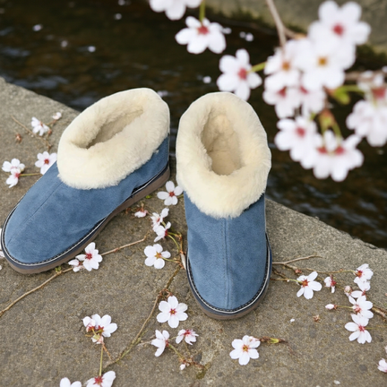PEPITA er en lukket lammeskinds hjemmesko med en god bred og luftig pasform. Skræddersyet med ægte ruskind udvendig og merino lammeuld indvendig. For ekstra komfort har hjemmeskoen en god fast og skridsikker EVA gummisål.