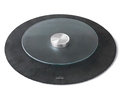 Drejelig glasstander og base i rustfrit stål, der muliggør nem og jævn rotation i begge retninger.