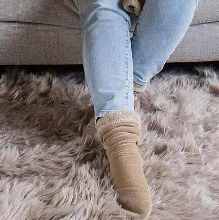 Varme plys ankelsokker med ultra blødt teddy stof indvendig og velour udvendig. Skridsikker med gummidupper på undersiden.
