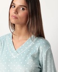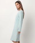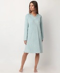 Aqua grøn farvet natkjole i lækkert elastisk velourstof med lycra. Lange ærmer med polka dot design og broderede detaljer.