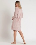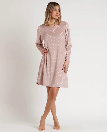 Lys rosa farvet natkjole i lækkert elastisk velourstof med lycra. Lange ærmer med polka dot design og broderede detaljer.